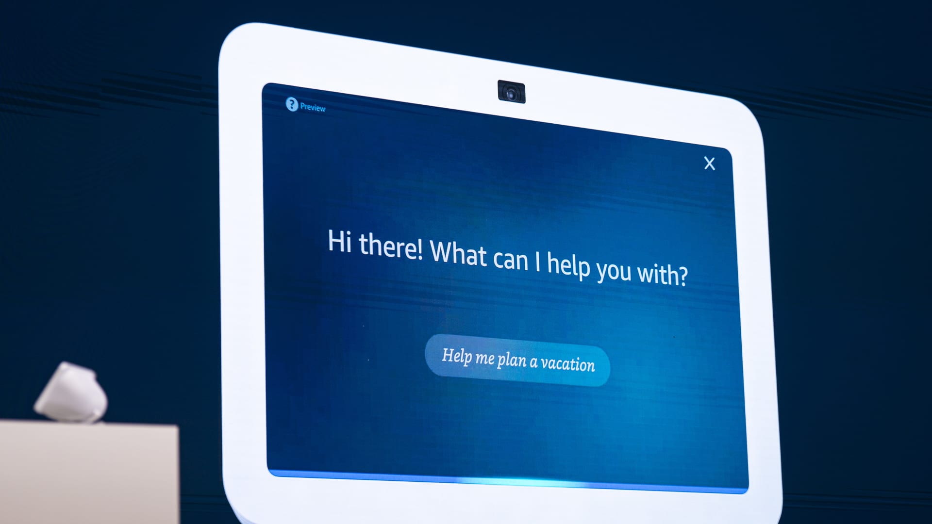 The Amazon Echo Show 8 smart-home device is unveiled during the Amazon Devices and Services event at the HQ2 campus in Arlington, Virginia, US, on Wednesday, Sept. 20, 2023. Amazon.com Inc. previewed a push into generative artificial intelligence with new features for its Alexa voice assistant. Photographer: Al Drago/Bloomberg via Getty Images