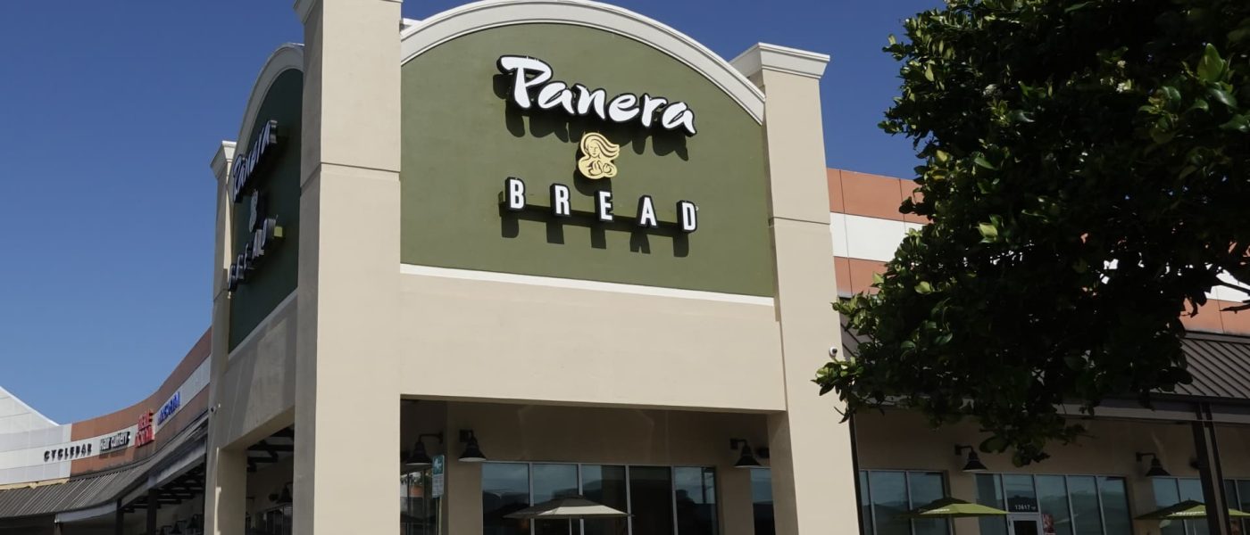 A Panera Bread sign hangs on the exterior of the restaurant on July 25, 2025 in Miami, Florida.