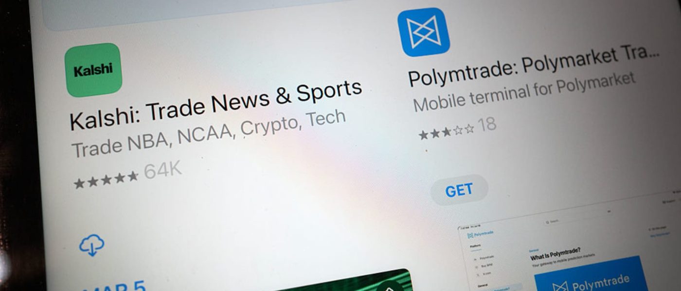 In this photo illustration, Apps for online prediction market sites are shown on an electronic device on Feb. 25, 2026 in Chicago, Illinois.