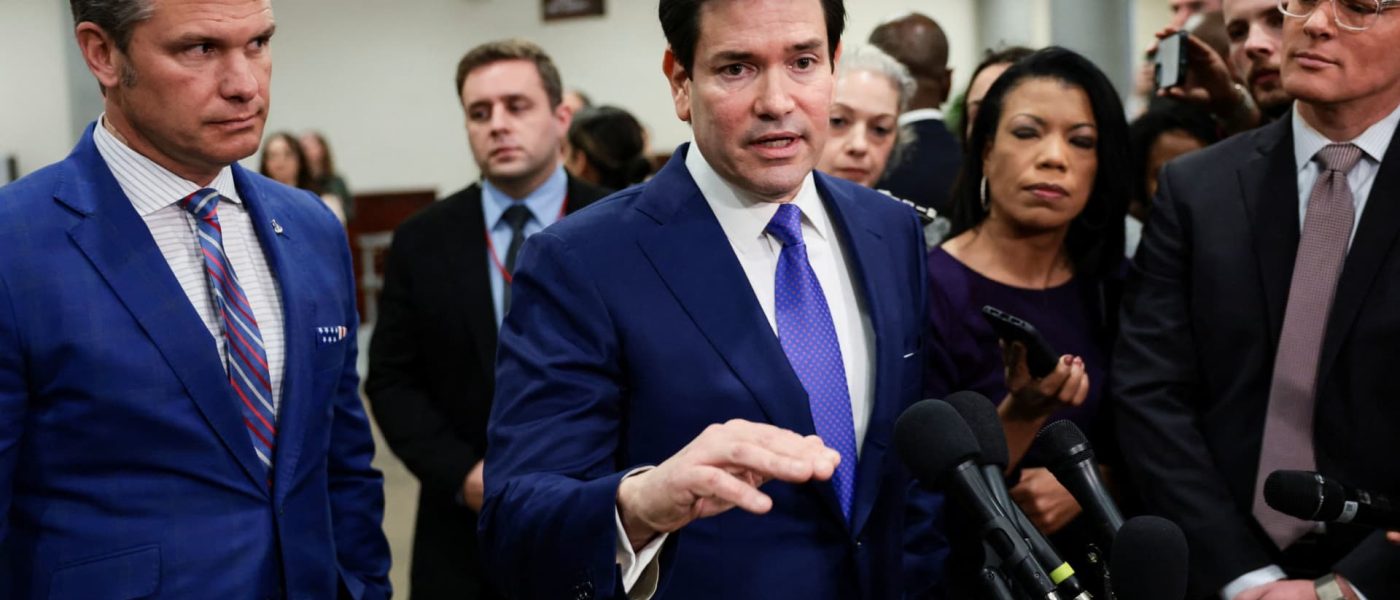 U.S. Secretary of State Marco Rubio, next to U.S. Defense Secretary Pete Hegseth, speaks to the media on the day of a briefing for the House of Representatives on the situation in Venezuela, on Capitol Hill in Washington, D.C., U.S., Jan. 7, 2026