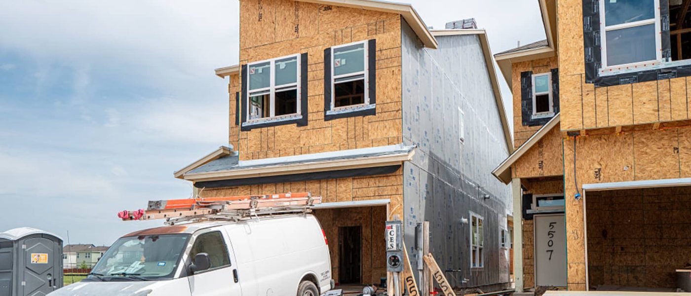Houses undergo construction in a neighborhood on April 17, 2025 in Austin, Texas.