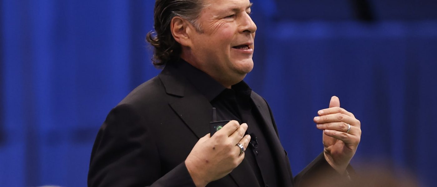 Salesforce CEO Marc Benioff delivers the keynote address at the start of the Dreamforce conference in San Francisco on Oct. 14, 2025.