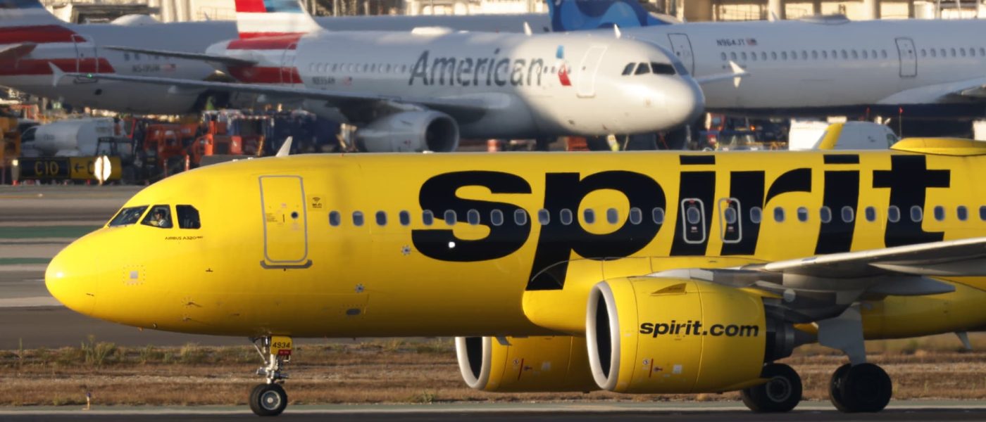 A Spirit Airlines Airbus A320 taxis at Los Angeles International Airport after arriving from Boston on September 1, 2024 in Los Angeles, California.