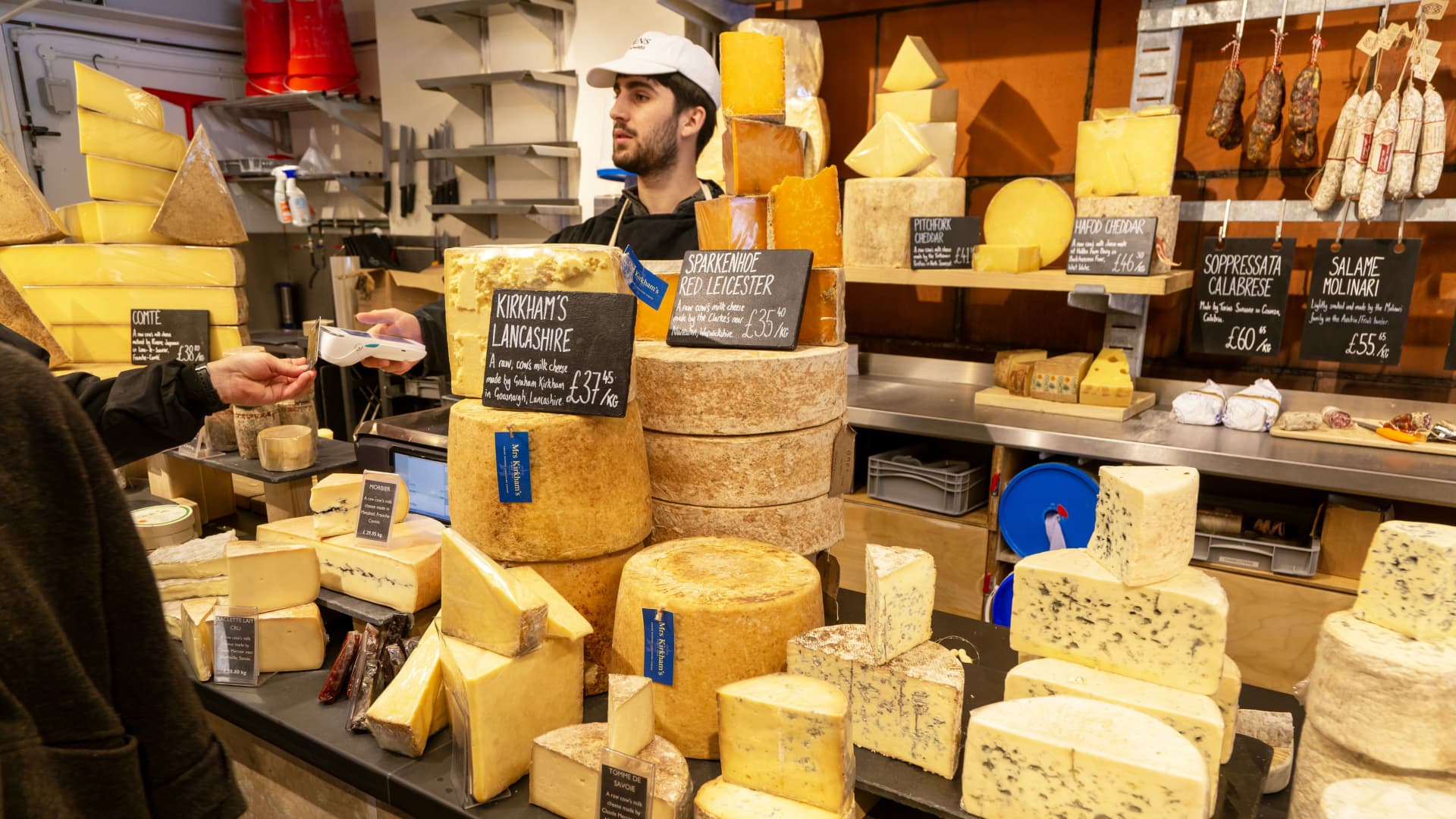 Interior of cheese monger specialist cheese shop, Mons cheese mongers, East Dulwich, London, England, UK.