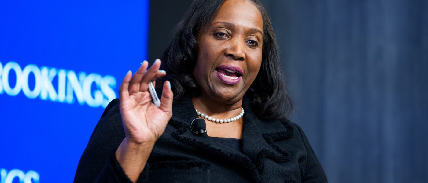 Lisa Cook, governor of the US Federal Reserve, at The Brookings Institute in Washington, DC, US, on Monday, Nov. 3, 2025.