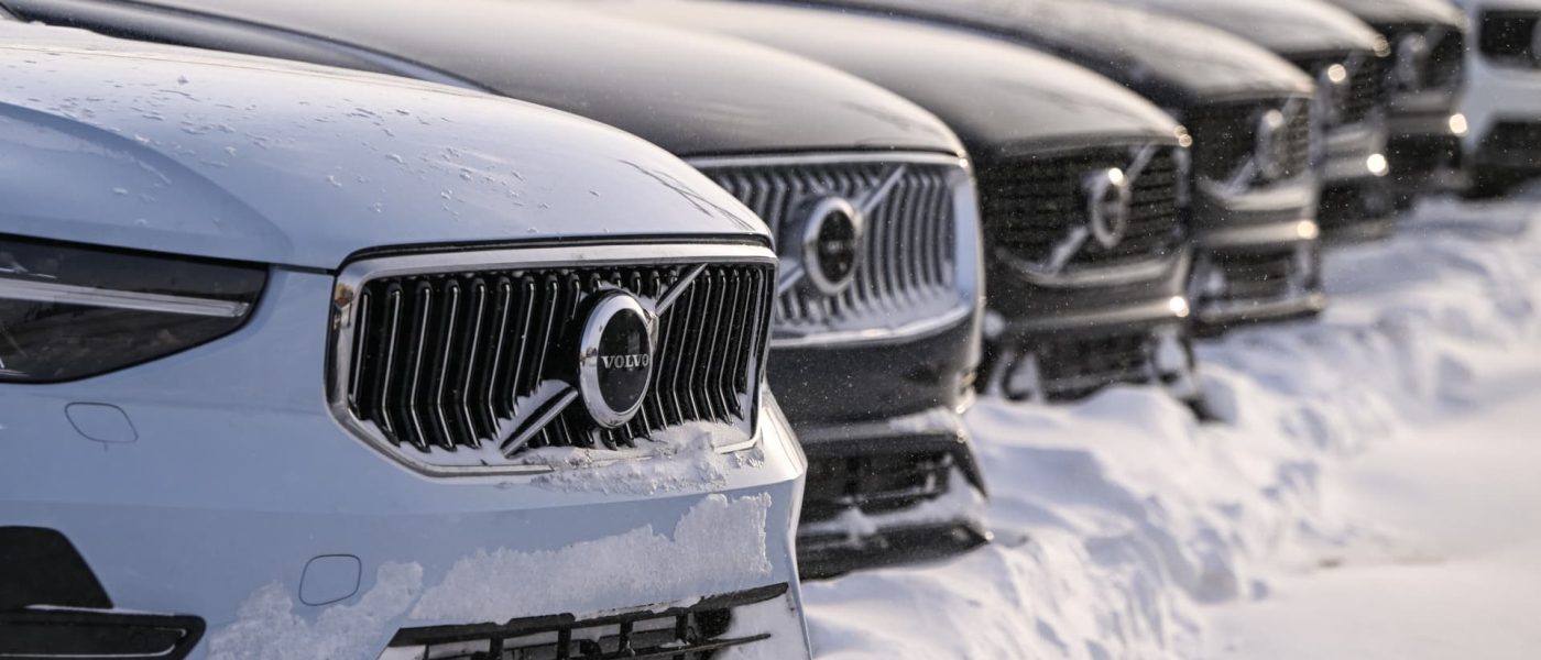 Volvo vehicles seen outside a Volvo dealership in Edmonton, AB, Canada, on February 02, 2025.