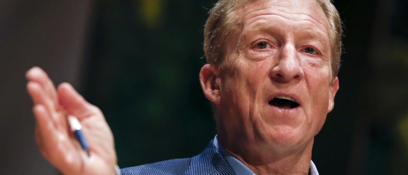 Steyer nodded to his wealth Wednesday, noting his business enterprises made “billions of dollars.” But he also sounded populist tones.