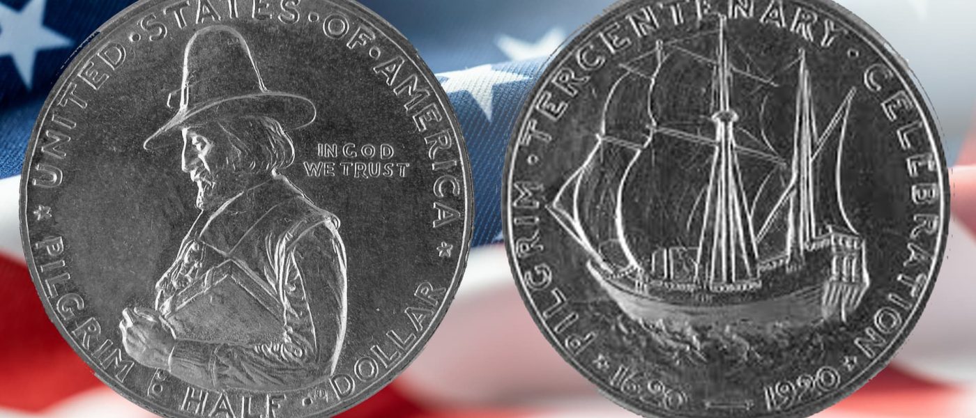 Commemorative quarter depicting a pilgrim.