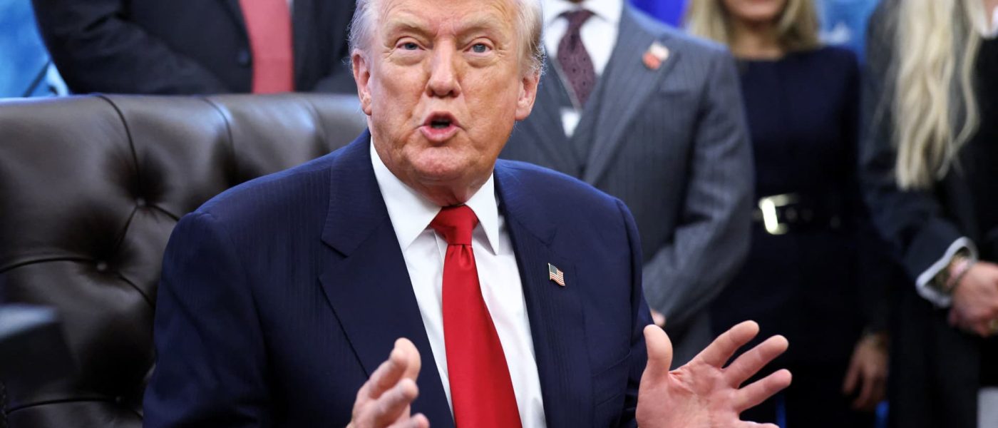 U.S. President Donald Trump speaks, during the swearing-in ceremony for Sergio Gor as U.S. Ambassador to India, at the White House in Washington, D.C., U.S., Nov. 10, 2025.
