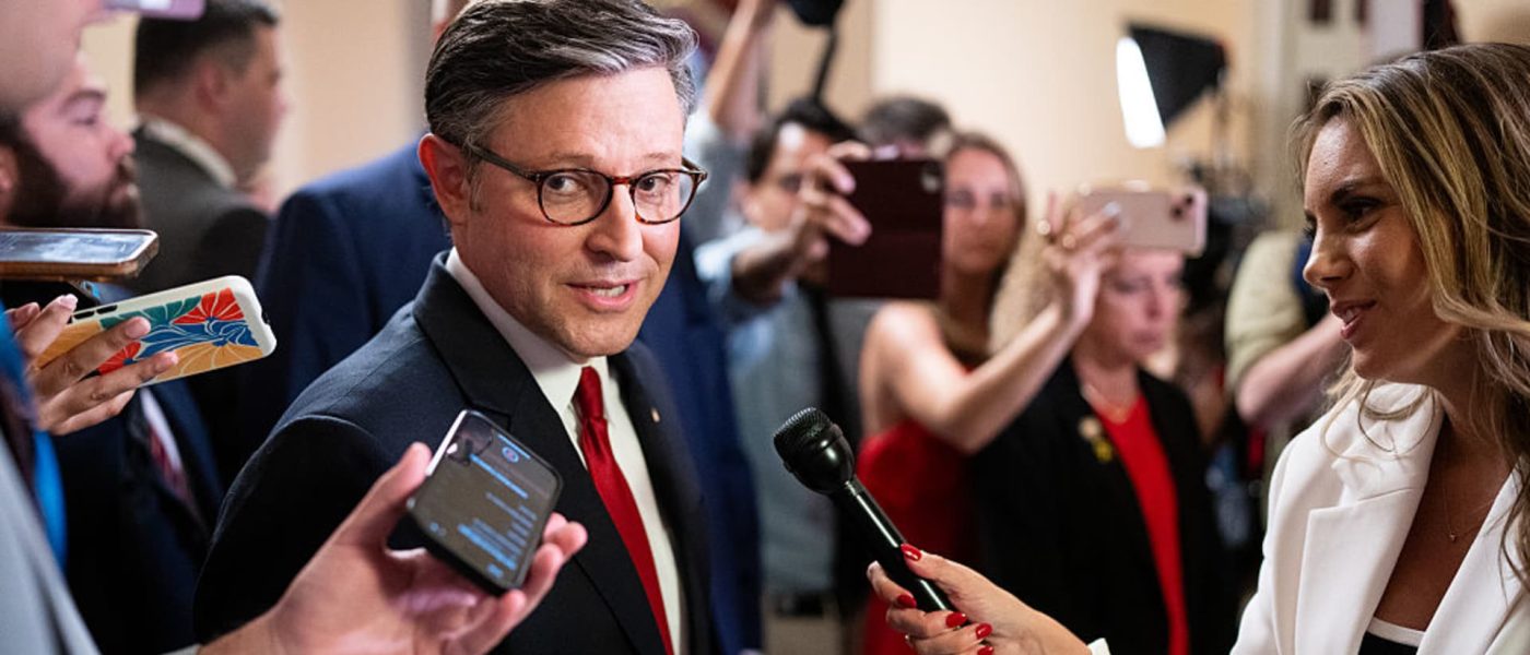 Speaker of the House Mike Johnson, R-La., speaks to reporters as he walks back to his office as the House of Representatives waits to vote on President Trump’s “big beautiful bill” reconciliation package on July 3, 2025.