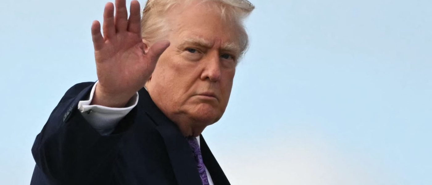 US President Donald Trump waves while boarding Air Force One at Palm Beach International Airport on November 30, 2025, on his way back to Washington, DC.
