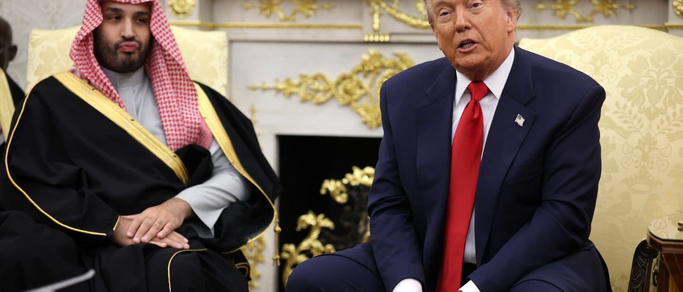 U.S. President Donald Trump (R) speaks during a bilateral meeting with Crown Prince and Prime Minister Mohammed bin Salman of Saudi Arabia (L) in the Oval Office of the White House on November 18, 2025 in Washington, DC.