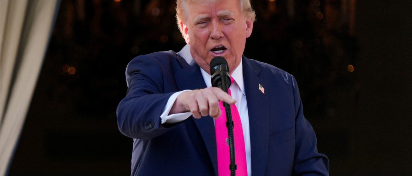 U.S. President Donald Trump gestures, as he speaks from a balcony, on the day he is expected to sign a sweeping spending and tax legislation, known as the “One Big Beautiful Bill Act,” at the White House in Washington, D.C., U.S., July 4, 2025.