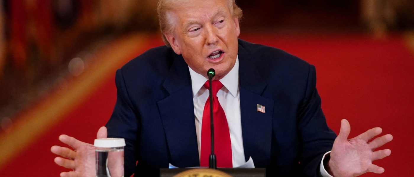U.S. President Donald Trump speaks during a round table on collegiate sports in the White House in Washington, D.C., March 6, 2026.