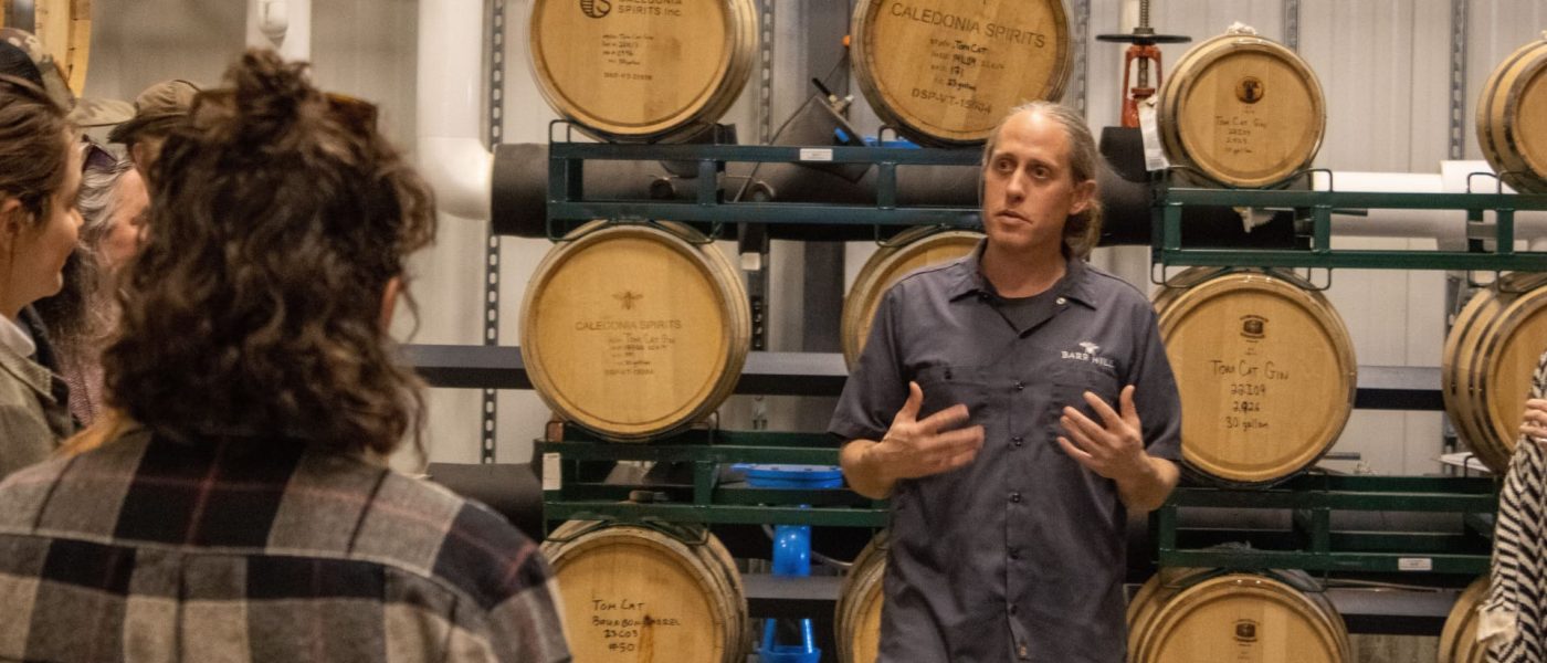Ryan Christiansen, president and head distiller at Caledonia Spirits, giving a tour in Montpelier, VT.