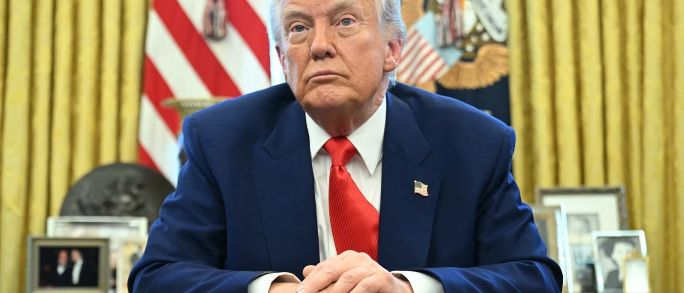 File: President Donald Trump looks on after signing an executive order in the Oval Office of the White House on April 9, 2025.