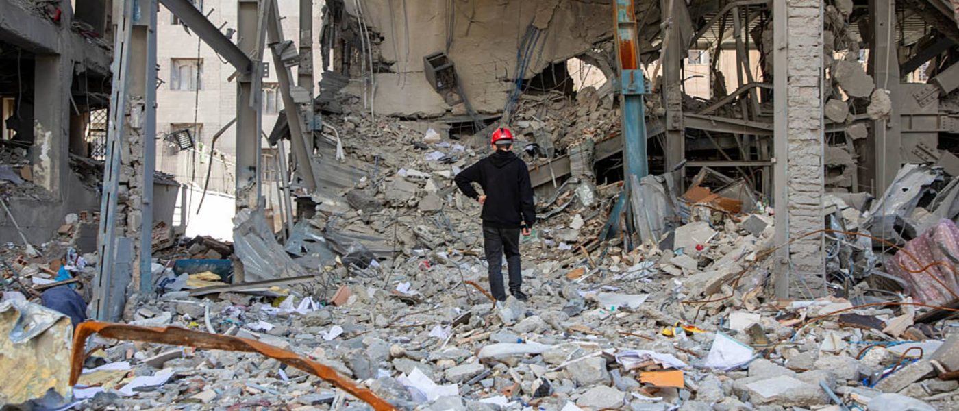 A man walks among buildings destroyed in a joint attack by Israel and the United States on April 6, 2026, in Tehran, Iran.