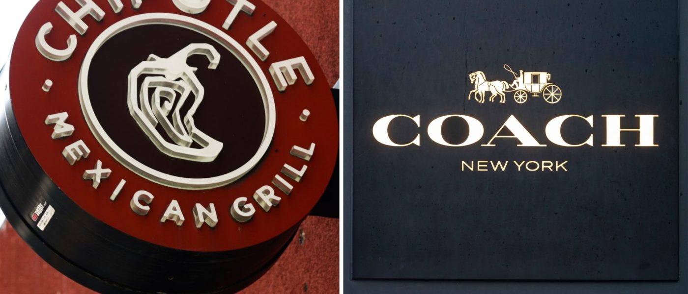 Chipotle Mexican Grill and Coach store logos.